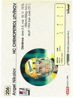 1994-95 APS Angel Nikolov HC Chemopetrol Litvínov č. 206