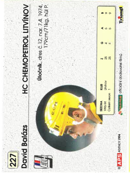 1994-95 APS David Balázs HC Chemopetrol Litvínov č. 227