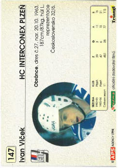 1994-95 APS Ivan Vlček HC Interconex Plzeň č. 147