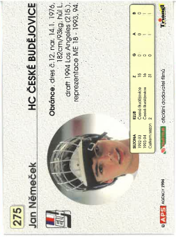 1994-95 APS Jan Němeček HC České Budějovice č. 275