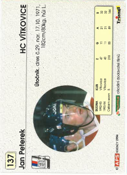 1994-95 APS Jan Peterek HC Vítkovice č. 137