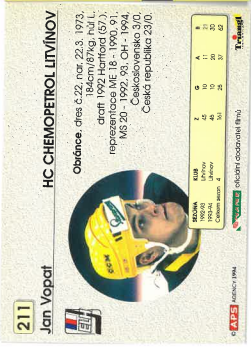 1994-95 APS Jan Vopat HC Chemopetrol Litvínov č. 211