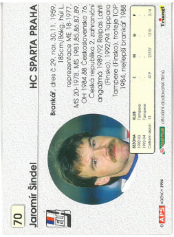 1994-95 APS Jaromír Šindel HC Sparta Praha č. 70