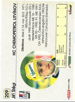 1994-95 APS Jiří Šlégr HC Chemopetrol Litvínov č. 209