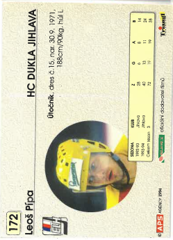 1994-95 APS Leoš Pípa HC Dukla Jihlava č. 172