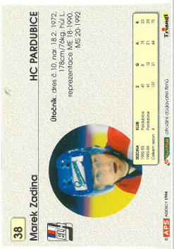 1994-95 APS Marek Zadina HC Pardubice č. 38