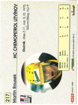 1994-95 APS Martin Rousek HC Chemopetrol Litvínov č. 217