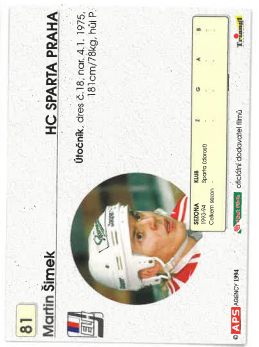 1994-95 APS Martin Šimek HC Sparta Praha č. 81