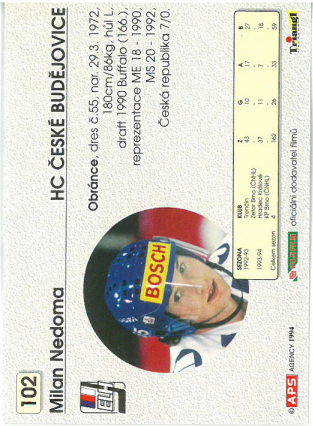 1994-95 APS Milan Nedoma HC České Budějovice č. 102