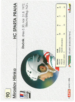 1994-95 APS Miroslav Hlinka HC Sparta Praha č. 90