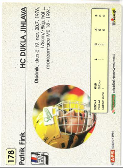 1994-95 APS Patrik Fink HC Dukla Jihlava č. 178