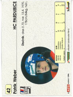 1994-95 APS Patrik Weber HC Pardubice č. 42