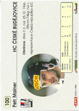1994-95 APS Petr Mainer HC České Budějovice č. 100