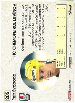 1994-95 APS Petr Svoboda HC Chemopetrol Litvínov č. 205