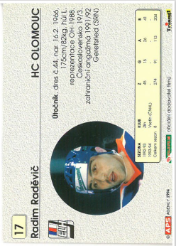 1994-95 APS Radim Raděvič HC Olomouc č. 17