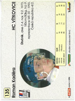 1994-95 APS Roman Kaděra HC Vítkovice č. 135