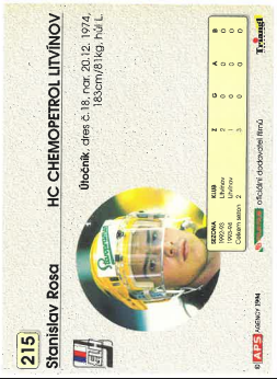 1994-95 APS Stanislav Rosa HC Chemopetrol Litvínov č. 215