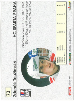 1994-95 APS Zdeněk Toužimský HC Sparta Praha č. 73