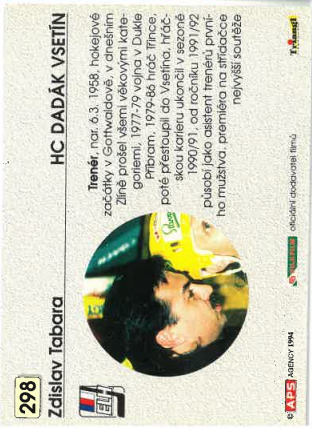 1994-95 APS Zdislav Tabara HC Dadák Vsetín č. 298
