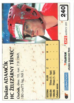 1995-96 APS Dušan Adamčík HC Železárny Třinec č. 240