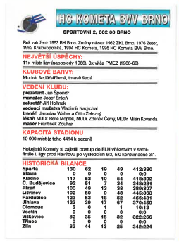 1995-96 APS HC Kometa BVV Brno Logo Teamu