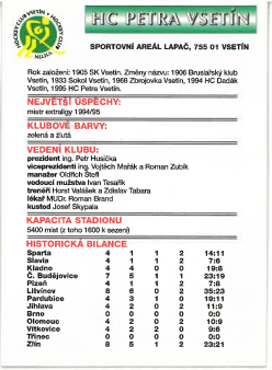 1995-96 APS HC Petra Vsetín Logo Teamu