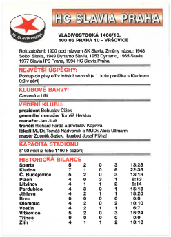 1995-96 APS HC Slavia Praha Logo Teamu