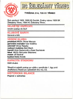 1995-96 APS HC Železárny Třinec Logo Teamu
