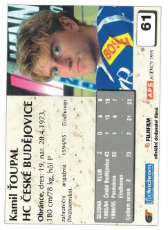 1995-96 APS Kamil Ťoupal HC České Budějovice č. 61