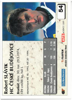1995-96 APS Robert Slávik HC České Budějovice č. 54
