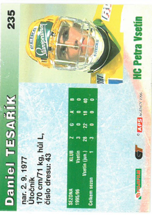 1996-97 APS Daniel Tesařík HC Petra Vsetín č. 235