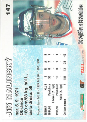 1996-97 APS Jiří Malinský HC Pojišťovna Pardubice č. 147