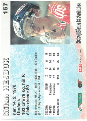 1996-97 APS Milan Hejduk HC Pojišťovna Pardubice č. 157