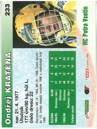 1996-97 APS Ondřej Kratěna HC Petra Vsetín č. 233