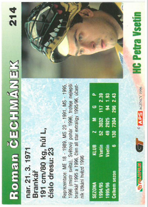 1996-97 APS Roman Čechmánek HC Petra Vsetín č. 214