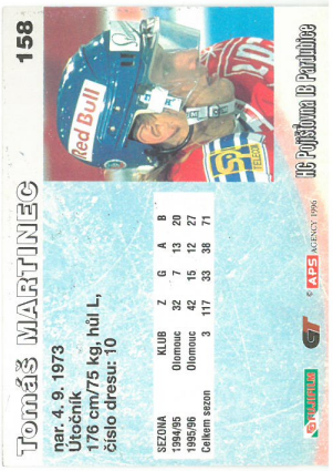 1996-97 APS Tomáš Martinec HC Pojišťovna Pardubice č. 158