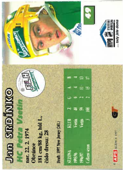 1997-98 APS Jan Srdínko HC Petra Vsetín č. 49