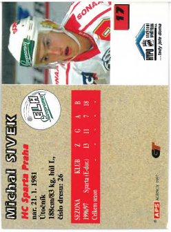 1997-98 APS Michal Sivek HC Sparta Praha č. 17