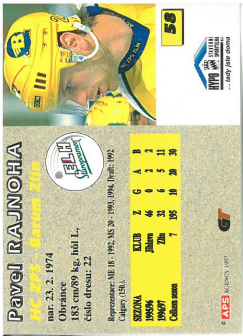 1997-98 APS Pavel Rajnoha HC ZPS - Barum Zlín č. 58