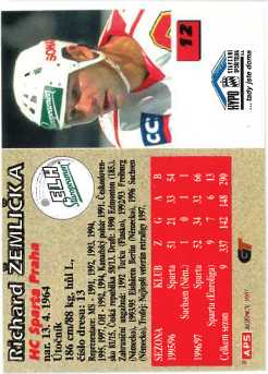 1997-98 APS Richard Žemlička HC Sparta Praha č. 12