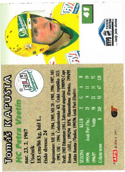 1997-98 APS Tomáš Kapusta HC Petra Vsetín č. 41