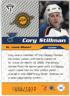 2000-01 Titanium Draft Day Game Used Jersey Cory Stillman /1010 č. 90