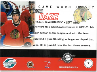 2003-04 Pacific Supreme Authentic Game-Worn Jersey Eric Daze /700 č. 7