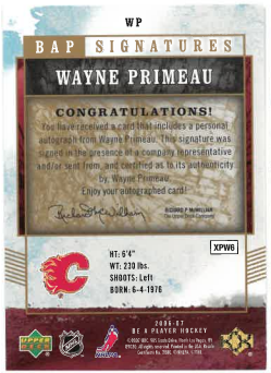 2006-07 UD Be a Player BAP Signature Wayne Primeau č. WP