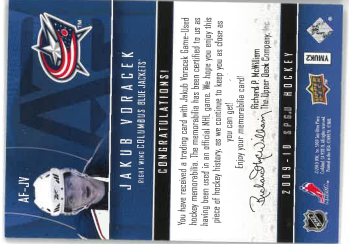 2009-10 UD SP Game Used Authentic Fabric Jakub Voráček č. AF-JV