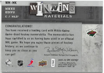 2009-10 UD SPx Winning Material Mikko Koivu č. WM-MK