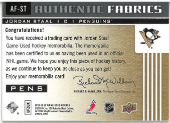 2011-12 UD SP Game Used Authentic Fabrics Jordan Staal č. SF-ST