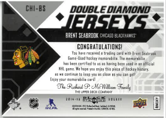 2014-15 UD Black Diamond Double Jersey Brent Seabrook č, CHI-BS