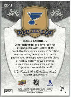 2015-16 UD Contours Club Crest Robby Fabbri č. CC-14