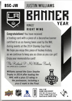 2016-17 UD SP Game Used Banner Year Justin Williams č. BSC-JW